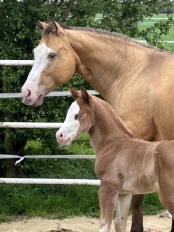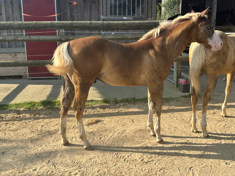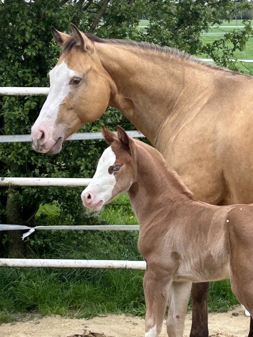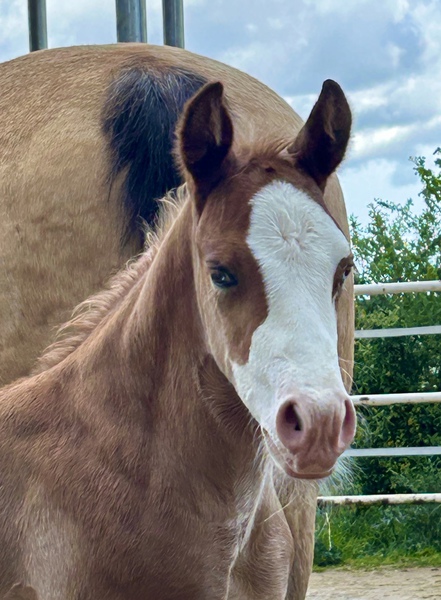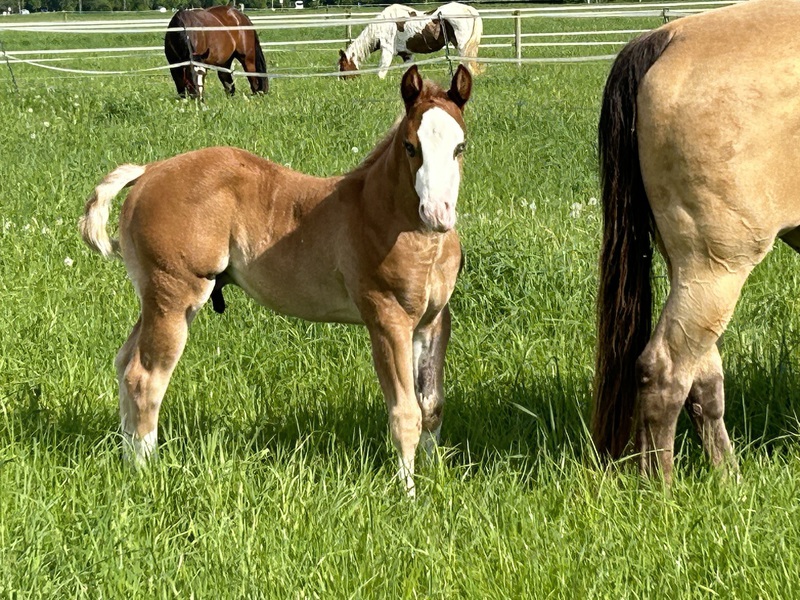 2024 hat sie ein großartiges Hengstfohlen von Sharp Dressed Shiner bekommen, ein toller Kerl.