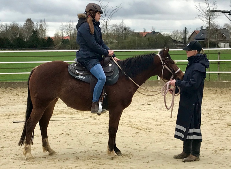 Dort hat sie 2016 ihren ersten Kurs bei Alfonso Aguilar besucht und wir haben sie mit Natural Horsemanship und erstes Gewöhnen an das Reitergewicht im Winter 2018/19 gestartet.